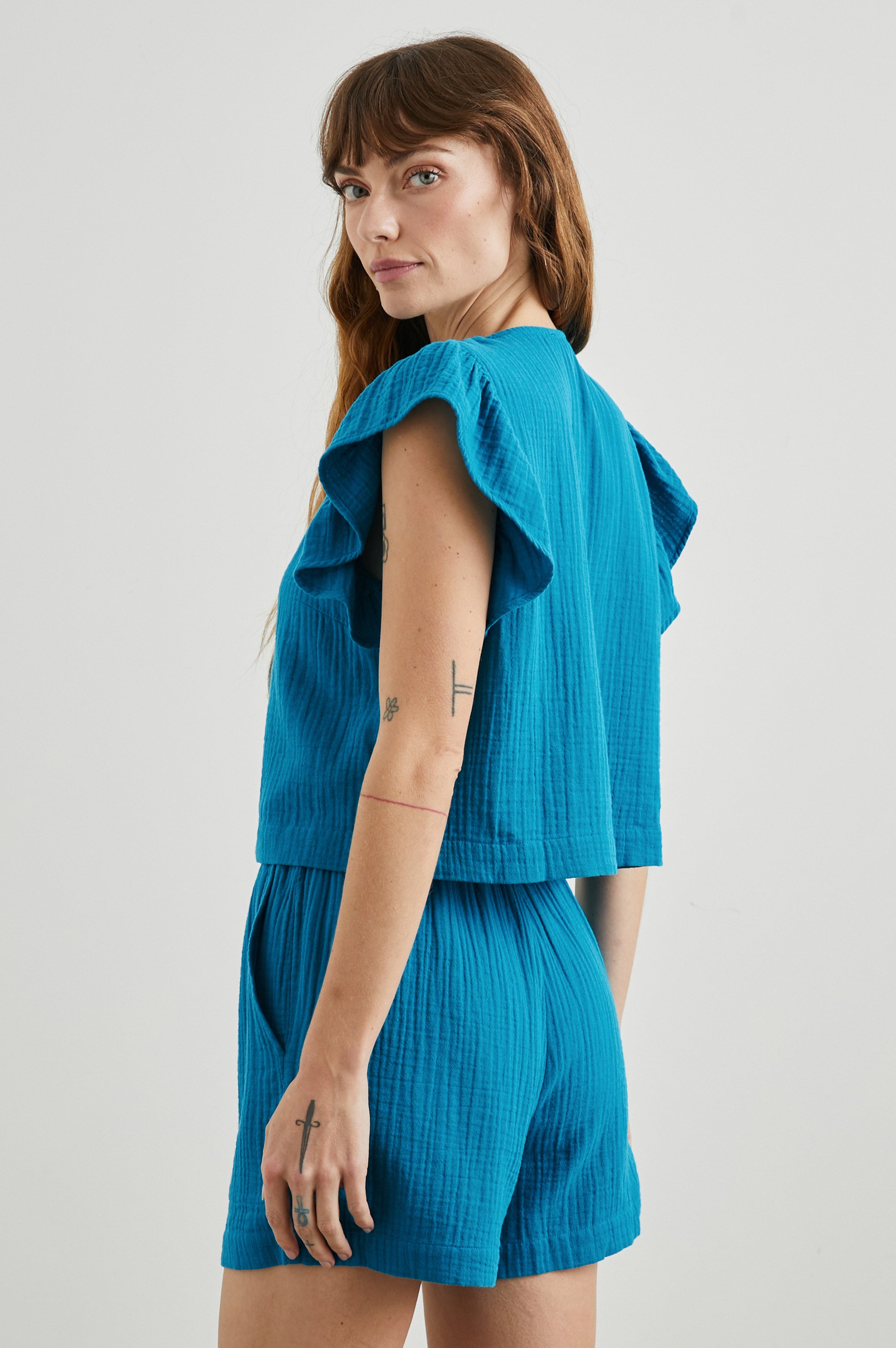Made with super soft, breezy double gauze cotton in a slightly cropped pullover silhouette, this top is perfect for transitional weather.